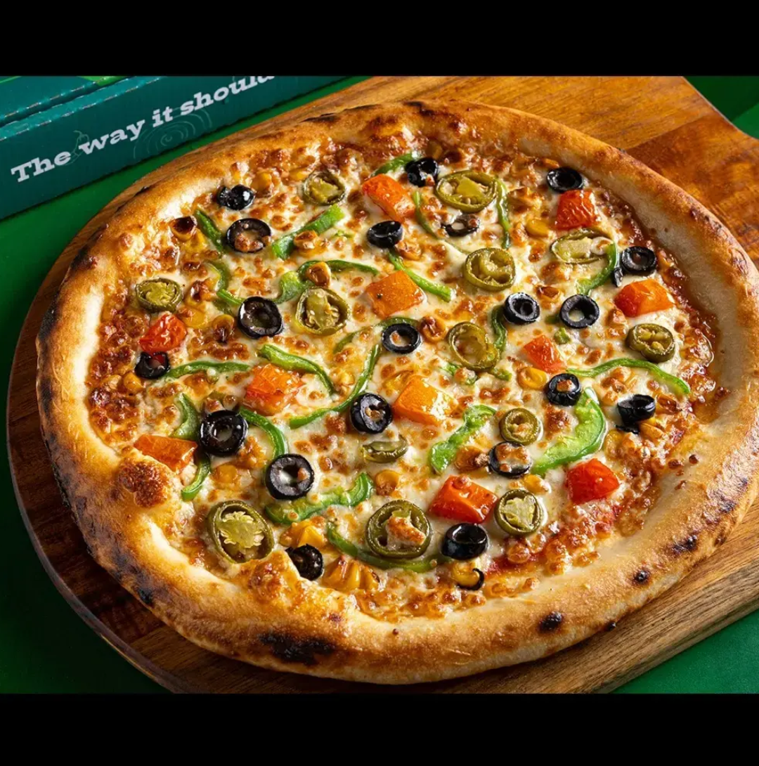 A deliciously healthy pizza loaded with farm-fresh vegetables, melted mozzarella, and a tangy tomato base on a crispy crust.